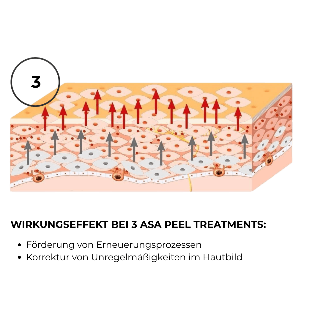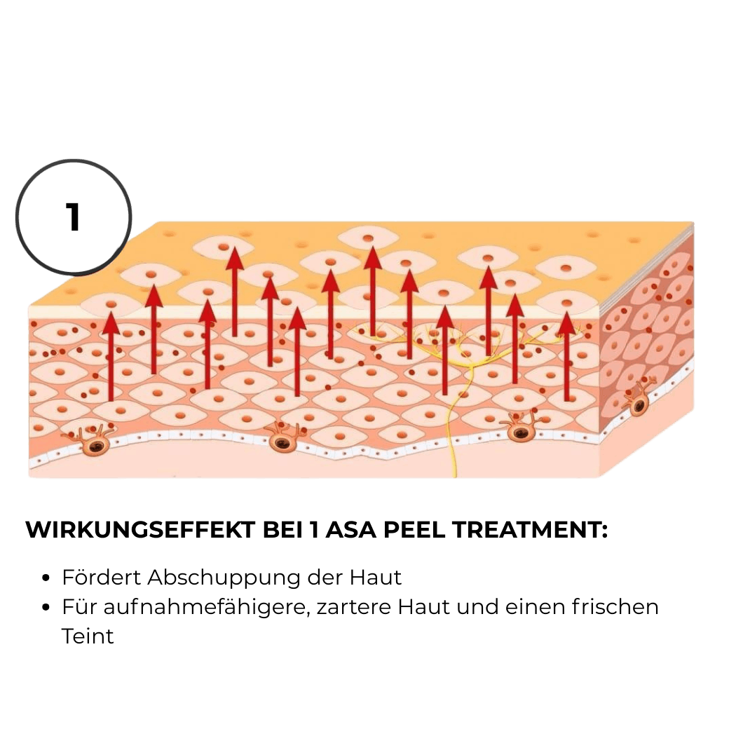 Das ASA Peel von Klapp Cosmetics ist ein wirkungsvolles Fruchtsäure-Hauterneuerungsprogramm zur gezielten Verbesserung des Hautbildes. Mit zunehmendem Alter kann die Haut an Transparenz, Spannkraft und Ebenmäßigkeit verlieren. Die ASA-Behandlung unterstützt die Regeneration der Haut und verleiht ihr ein frischeres, glatteres und gleichmäßigeres Erscheinungsbild.